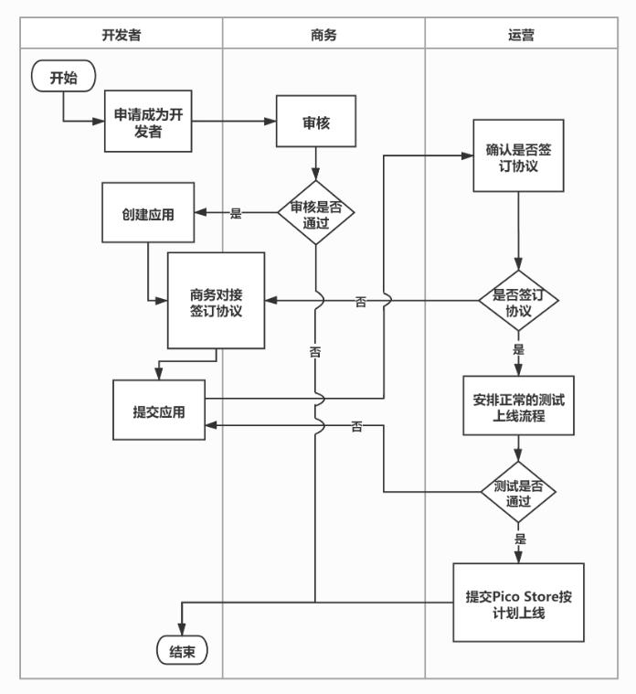 反观Pico这边,虽然也成立了一套从开发者到商务再到运营的内容管理流程。但是对比Oculus,我们可以发现明显的几点不同: