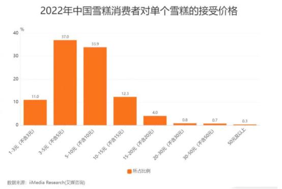 而“雪糕刺客”的出现,也反映了消费者对于雪糕价格的接受程度。据艾媒咨询数据,2022年中国雪糕消费者对单个雪糕的接受价位大多在3~5元之间,占比37%,接受单价在10元以下的占比81.9%。
