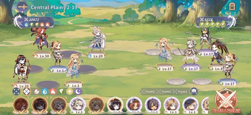 玩家可以在2*3的棋盘中上阵5个角色,在阵容调整中可以选择倾向于承受伤害或者是注重输出,稍微多了一些策略选择的空间。