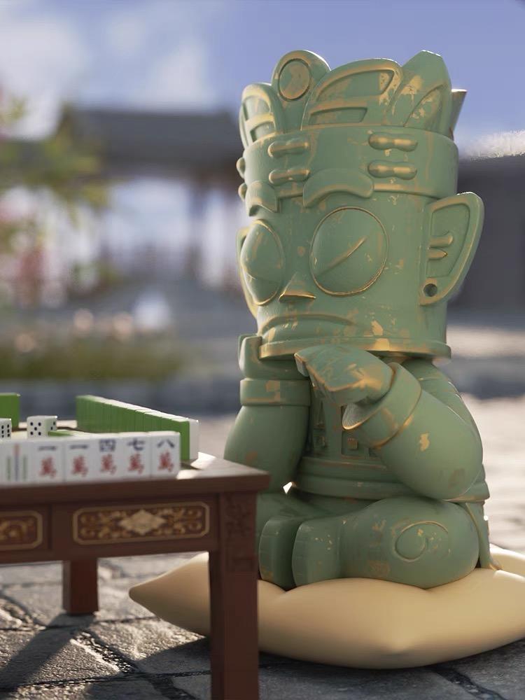△三星堆青铜小人打麻将文创摆件(图源:三星堆博物馆)
