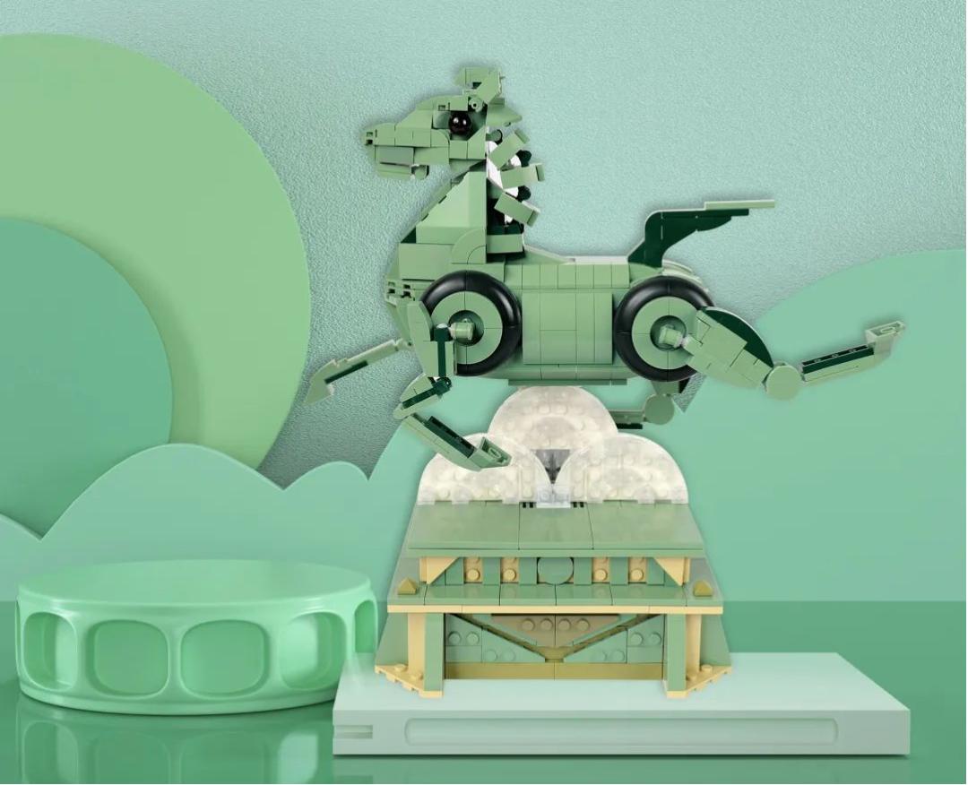 例如,甘博官宣即将推出的首款铜奔马立体积木,由859个组件精准拼接而成。据甘博文创中心设计团队介绍,在研发这款产品的过程中,如何还原铜奔马原型姿态成了最难的事情,团队历时5个多月时间,先后进行了无数次拼接尝试与打样修改,最后才实现按精准比例还原文物原型。可见,文物活化和萌化的过程有多难。