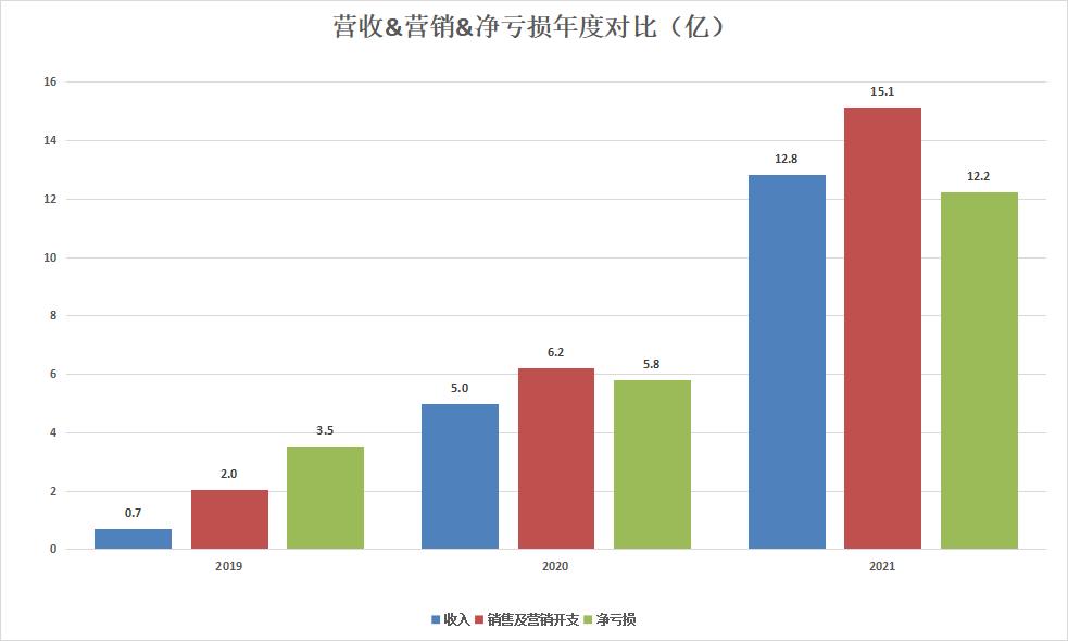 细究发现,亏损的大头来自销售及营销开支,过去三年分别是2.0亿、6.2亿、15.1亿,比净亏损还高一头。