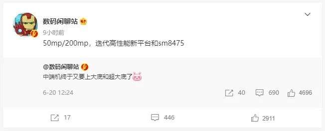 据数码闲聊站的情报,两个细分的配置,一个搭载 5000 万像素传感器,一个搭载 2 亿像素传感器,一个大底一个超大底。