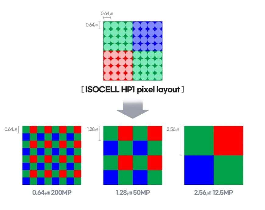 三星 HP1 有着 1/1.22” 感光面积,0.64μm 像素,支持 8K@30fps 视频拍摄,支持 4 合 1、16 合 1 的像素合并,输出 2.56μm、1250 万像素或 1.28μm 5000 万像素的静态图片。