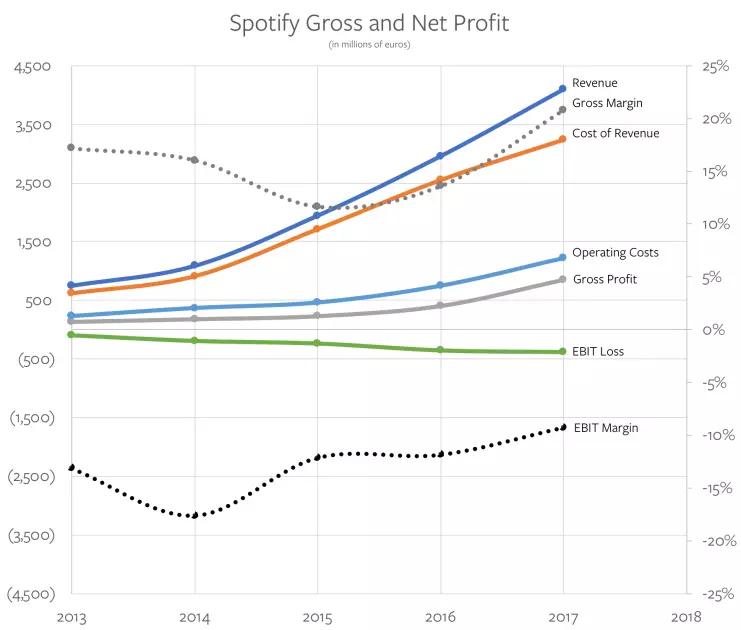 但这正是问题所在:Spotify 的利润率完全掌握在唱片公司的手中,即使在利率变动之后,该公司也不仅无利可图,而且亏损还在增加: