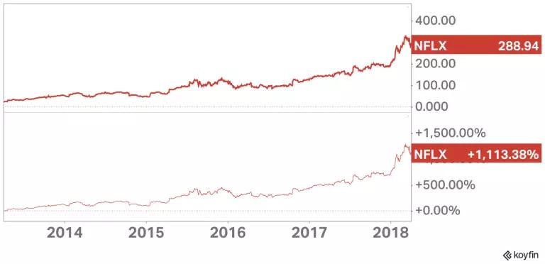 2018 年,当 Spotify 开始申请直接上市时,一个流行的做法是拿这家流媒体音乐服务与流媒体视频服务 Netflix 做比较;毕竟,这两者都是订阅制服务,都发展得很快,可以按需为消费者提供媒体。鉴于 Netflix 的股票在过去五年涨了 1113%,这种比较意在看好 Spotify: