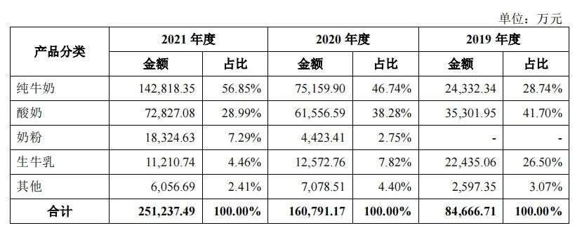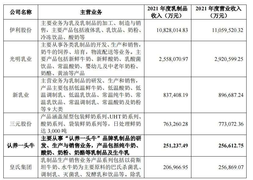 根据招股书,认养一头牛2021年营收已超25.6亿元,其中乳制品营收为25.1亿元,仅次于伊利乳业、光明乳业、新乳业、三元股份等已经创立数十年的行业龙头企业,跻身中国乳业前五强。