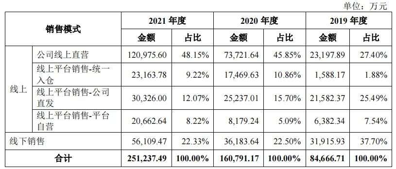 随后,除了在天猫、京东等电商平台铺货外,认养一头牛还积极把握抖音、快手等直播平台的带货流量红利,建立起运营高效、广泛多元、持续创新的线上渠道运营体系。招股书显示,认养一头牛线上渠道分为公司线上销售和线上平台销售,其中,线上平台销售又分为统一入仓、公司直发、平台自营三种类型。2019-2021年,认养一头牛线上渠道占比分别为62.3%、77.5%和77.67%。