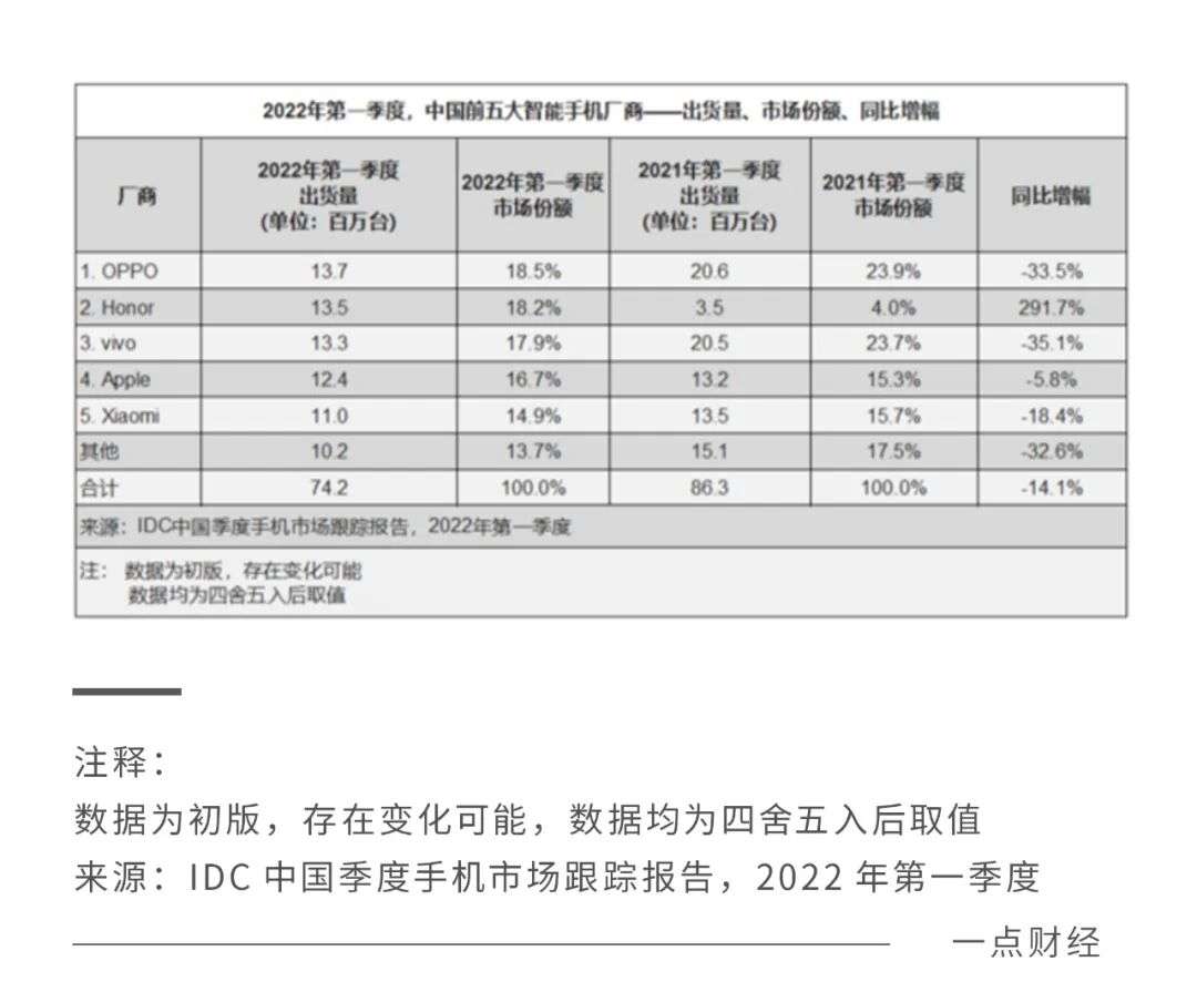 中国市场也未能独善其身,中国信通院的报告显示,今年一季度,国内市场手机总体出货量累计6934.6万部,同比下滑29.2%,国产品牌手机出货量累计为5764.9万部,同比降幅超过了30%。