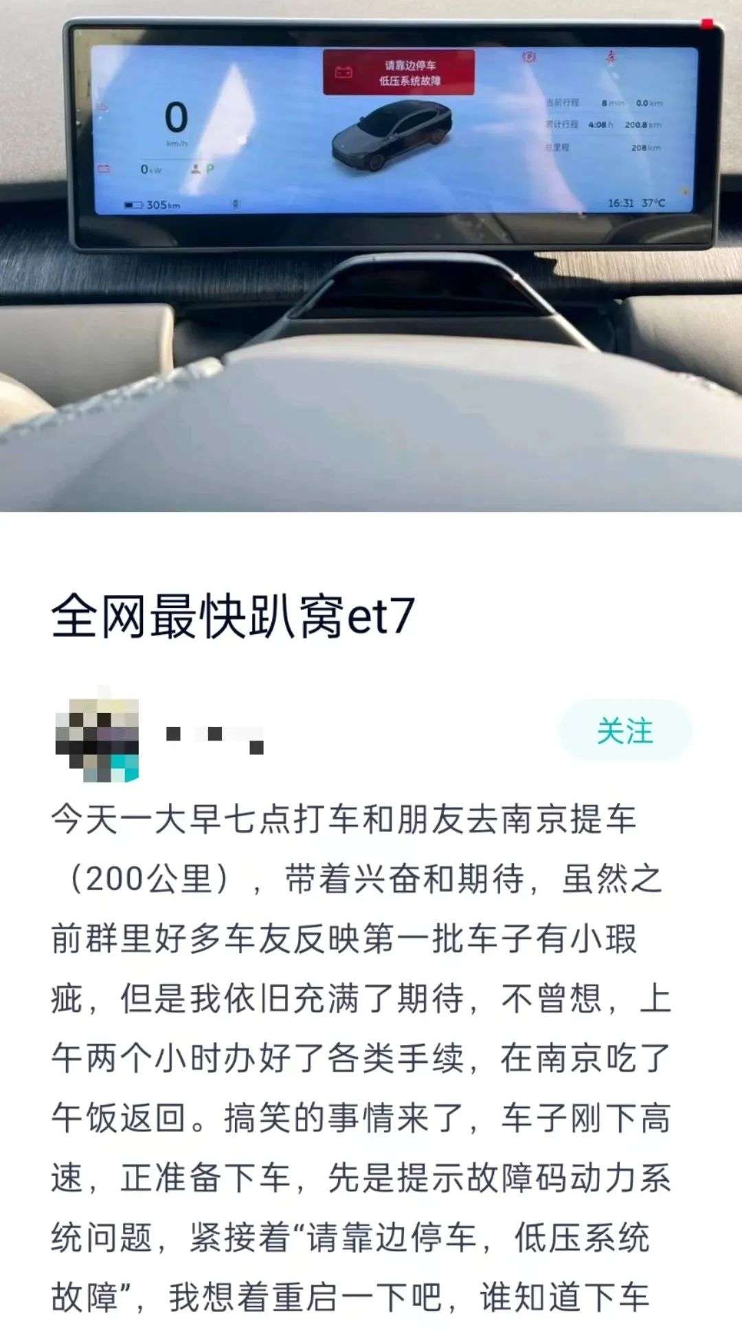此外,蔚来的新车ET7也被多名车主指责质量不过关。