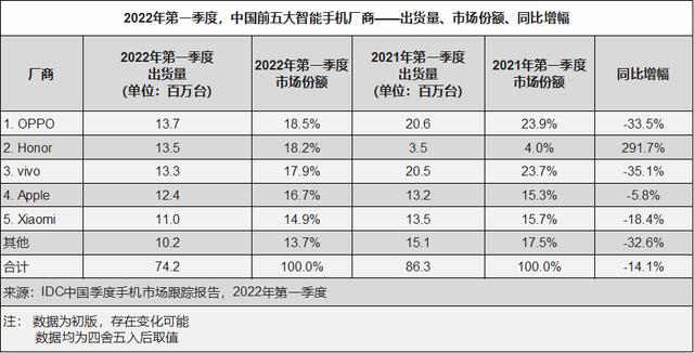 IDC数据显示,今年第一季度小米手机销量1100万台,位居国内第四。荣耀手机以惊人的份额上涨,冲到国内第二,OPPO、vivo线下渠道覆盖广,这三家超越小米,小雷还算能理解。可已经不是第四季度,苹果销量居然还能压制小米一头,小雷真的没想到。