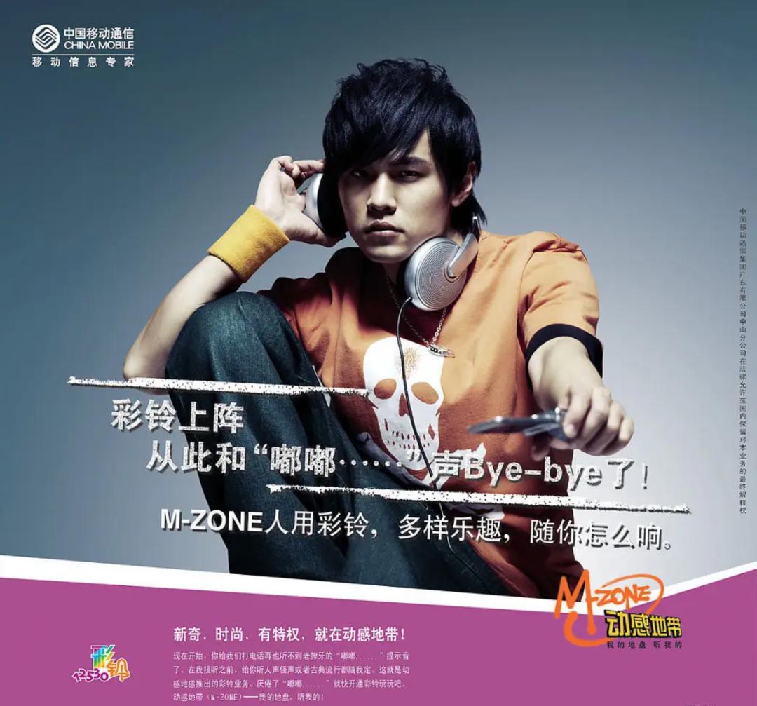 同时,出道不久的周杰伦也成为了动感地带品牌形象代言人,为年轻人喊出了“我的地盘听我的”的心声,《七里香》《晴天》《我的地盘》《乱舞春秋》等经典也借由彩铃火遍大江南北。