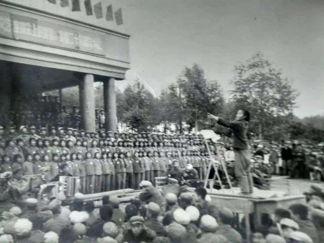 图:宁齐堃老师在指挥学生大合唱