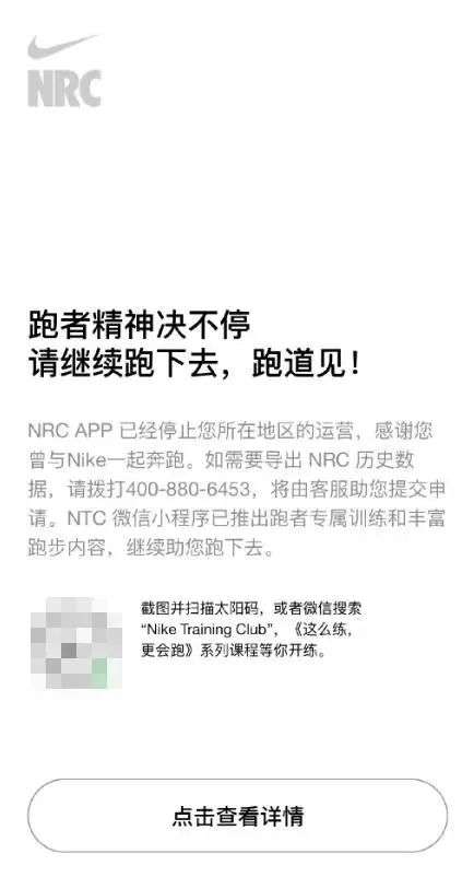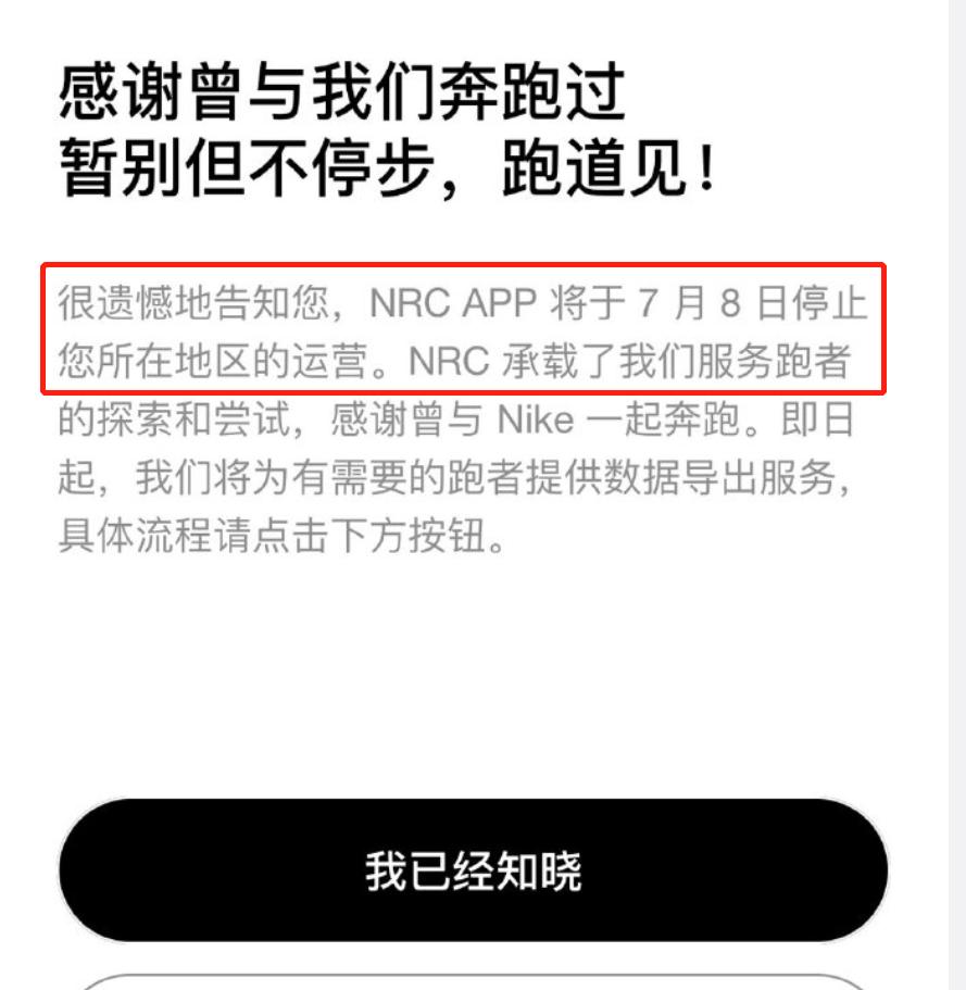 7 月 8 日,耐克旗下的跑步软件 Nike Run Club(以下简称为“ NRC ”)中文版正式停运了。