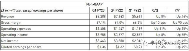 5月26日,英伟达公布了2023财年第一季度财报,Q1营收为82.88亿美元,同比增长46%,环比增长8%,超市场预期的81亿美元,游戏和数据中心两大核心业务的收入双双刷新上一季度所创的新高,其中数据中心的增长较上一季更强劲,营收37.5亿美元,同比增长83%,环比增长15%,市场预期36亿美元。