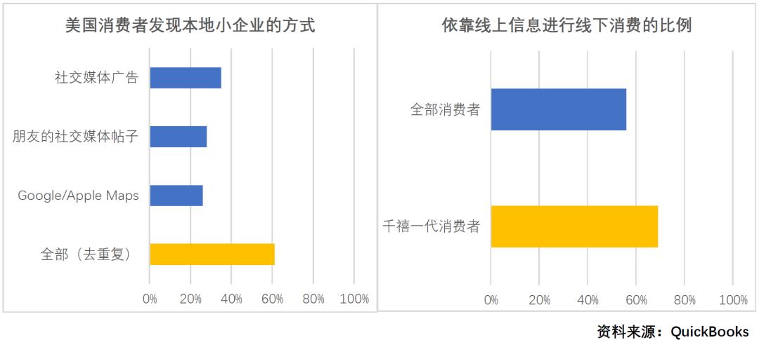 随着年轻消费者逐渐长大,互联网平台对小型线下零售商的帮助作用会进一步提升。中小企业SaaS服务商QuickBooks的调查显示,“千禧一代”(80后/90后/00后)消费者有69%依靠线上信息进行线下消费,比例远高于全体消费者。他们使用的当然不仅限于“五巨头”旗下的平台,还包括Pinterest、Discord这样的“特色社交媒体”,以及Yelp!、OpenTable这样的垂类信息平台。在大众点评选餐馆、用高德或百度地图找地点、用美团或口碑团购券进行结算——这种消费路径在任何意义上都不是中国特有的现象,在世界上任何一个主要经济体都很常见。