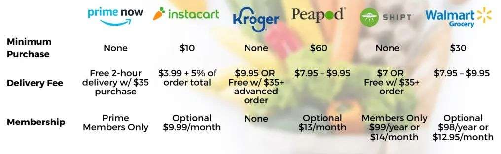 美国主流日用食杂电商平台的服务条件