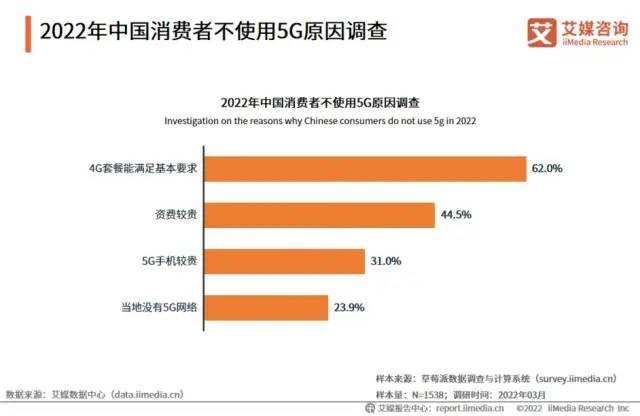 事实上,除了邬院士提出来的两项技术方面的问题以外,目前5G发展遇到的窘境还有一个根本原因——费用。根据艾媒咨询的调查显示,消费者之所以仍然坚持4G、没有换5G,跟当前运营商提供的5G手机套餐总体价位偏高有关,当然5G网络覆盖较差和没有杀手级应用也是关键因素。