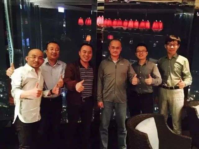 图:合并合影(从左到右)包凡,大众点评叶树蕻、张涛,美团王兴、陈少晖,王力行