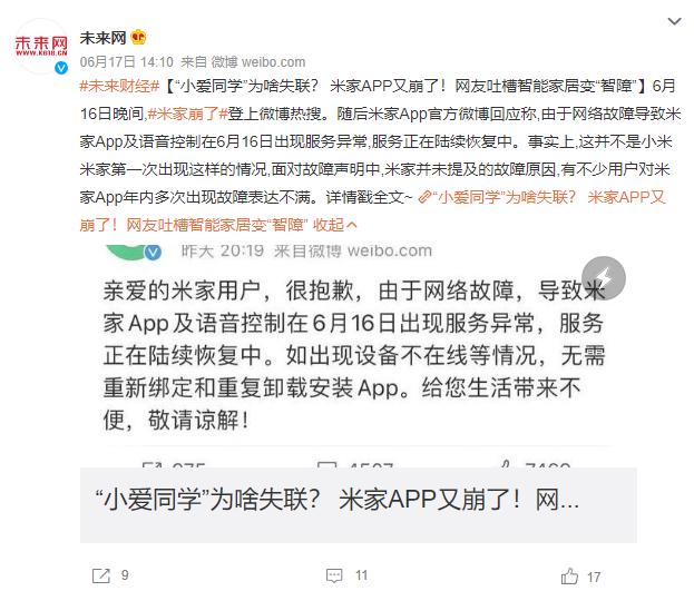 好家伙,不是咱自家的事情,是 米家服务器崩了。