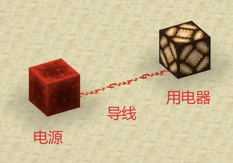 通过电源、导线和用电器相连,就能实现红石电路。