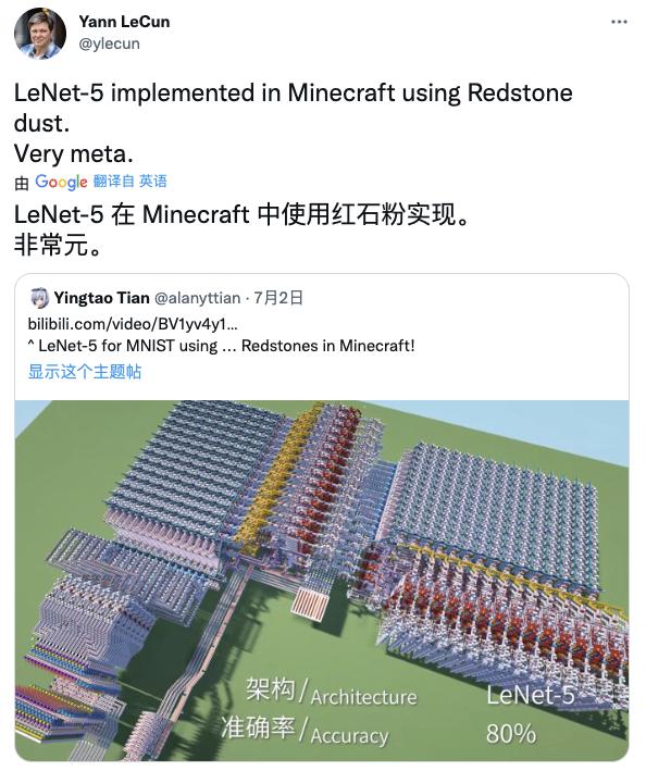 2018 年的图灵奖获得者 Yann LeCun 教授也在社交媒体上转发了这一视频,并称赞其 “ Very meta ” 。