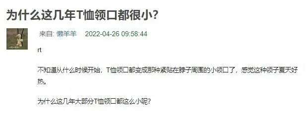 有不少“被勒到”的网友,在互联网上发出质疑:“为什么近些年的T恤领口都这么小?”