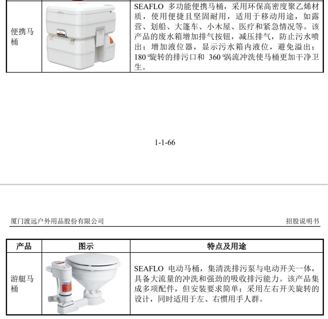 但其产品与常规印象中卖帐篷、户外服饰等户外产品有所不同,主要产品是皮划艇、水泵、便携式马桶、游艇马桶等。