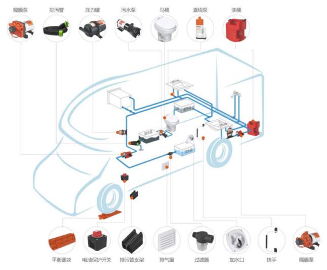 除了“小微型水泵”和“皮划艇”两大类产品之外,渡远户外围绕着房车、游艇等出行场景,开发有70多个系列产品,包括便携油桶、游艇房车专用马桶、桨板等配套产品等。