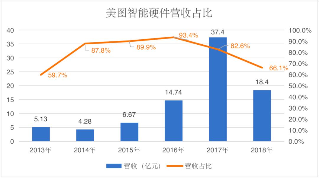 凭借非常刁钻的市场定位,美图手机颇受女性用户青睐。2013-2017年美图手机带来的收益占比逐渐升高,2016年已上升至93.4%,2017年虽然略有下降,但业务收益创下新高,达37.4亿元,同比增长153.8%。
