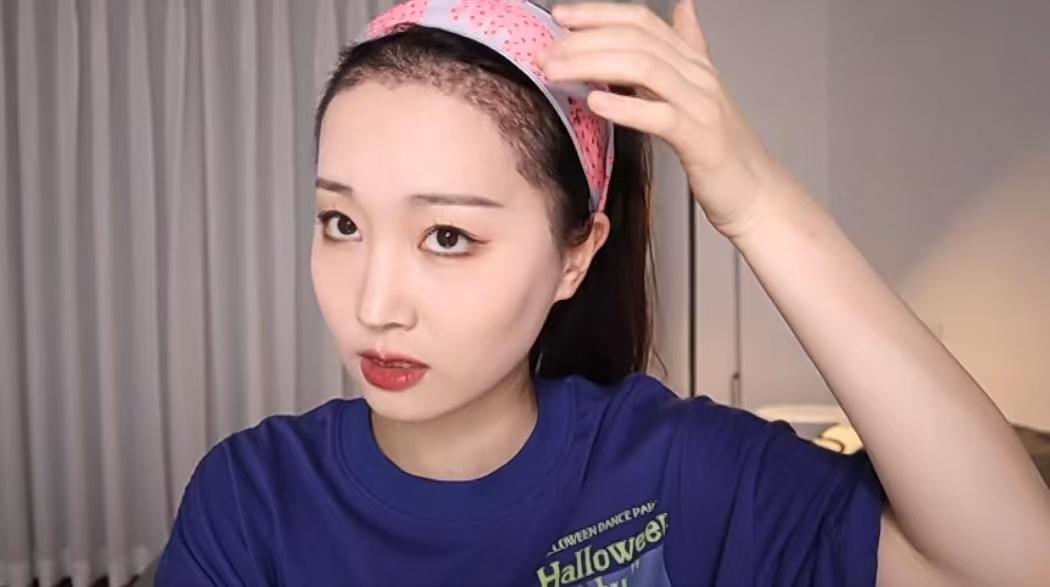 一美妆博主在 网络上分享自己的植发经历