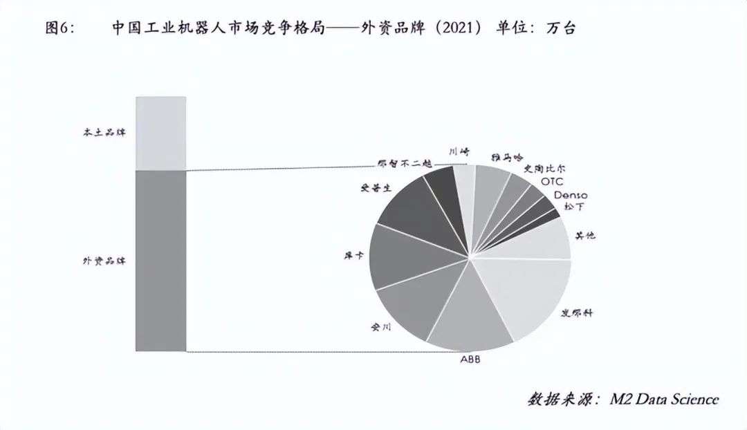 “ABB、库卡、安川、发那科”四大外资巨头在国内的工业机器人产能约为15万台,并在国内均有在建扩产项目,最晚到2025年,产能将超过50万台。