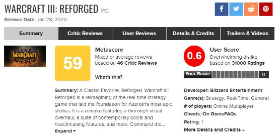 然而,暴雪却不小心把冷饭炒糊了,《魔兽争霸3重制版》发售后,立刻引起了玩家们的强烈不满:游戏的画质和建模都比较粗糙,看不出来有什么明显的提升,而过场动画和UI设计基本照搬原版,各种小BUG也层出不穷。考虑到一开始大张旗鼓的宣传预热和高昂的价格,重制版的质量显然不符合玩家们的预期,差评蜂拥而至,游戏在M站的玩家评分也跌破1分,创下历史最低。