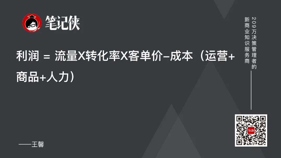 利润=流量X转化率X客单价-成本(运营+商品+人力)