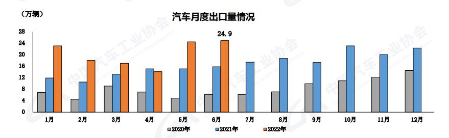 6月,汽车企业出口24.9万辆,连创历史新高,环比增长1.8%,同比增长57.4%。