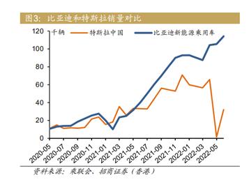 比亚迪与特斯拉销量对比 图片来源:招商证券