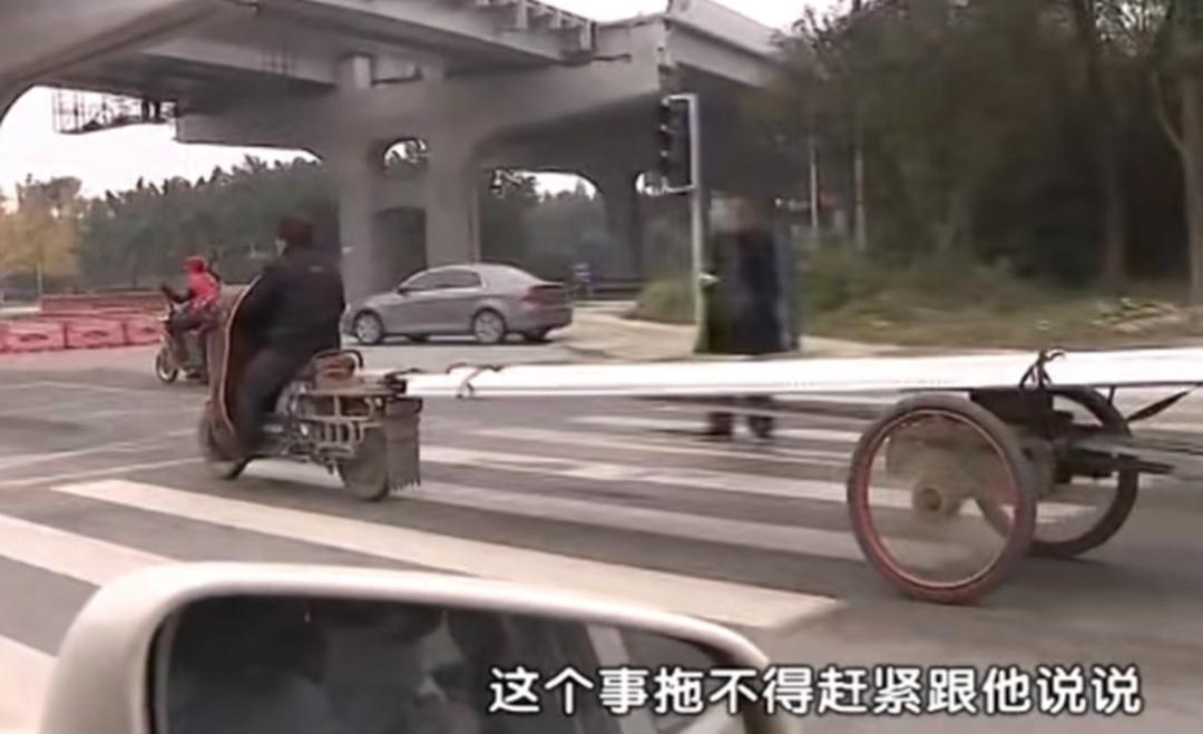 有个大爷骑电瓶车走快车道,拉货去二仙桥。