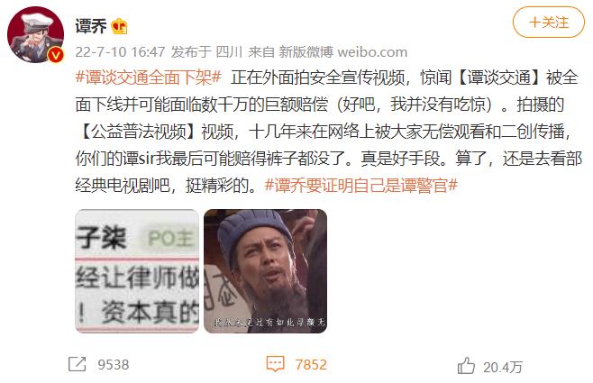 《谭谈交通》全面下架,谭Sir真的要“赔到裤子都没了”?
