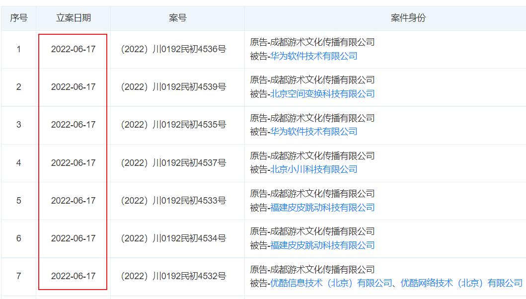 我又仔细翻了一下,发现被告席上 “ 坐 ” 了百度、快手、优酷、咪咕、爱奇艺、华为和 B 站。。。