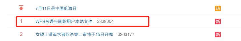 昨日,根据微博博主发布消息称,“WPS似乎带了某种敏感词和谐功能,被探测出来后,不单储存在云盘上的会被删除,就连本地文件也会被删除。”消息一出,迅速引发外界关注,经发酵后迅速登上微博热搜,并长期处于榜一位置。