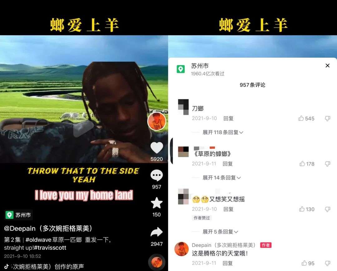 该视频发布于去年9月,Deepain通过模仿喜欢的嘻哈歌手Travis Scott的唱腔,用英文翻唱改编了腾格尔的《天堂》,获得了5920个点赞。