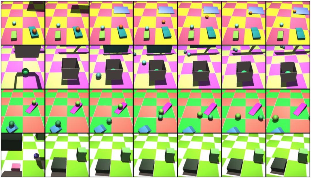 在此次工作中,研究团队通过给 PLATO 观看许多描绘简单场景的视频来训练它,比如球落到地上,球滚到其他物体后面又再次出现,很多球之间弹来弹去等。
