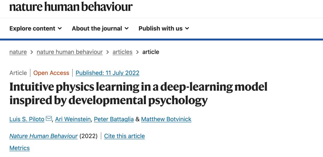 相关研究论文以“Intuitive physics learning in a deep-learning model inspired by developmental psychology”为题,已发表在科学期刊 Nature Human Behaviour 上。
