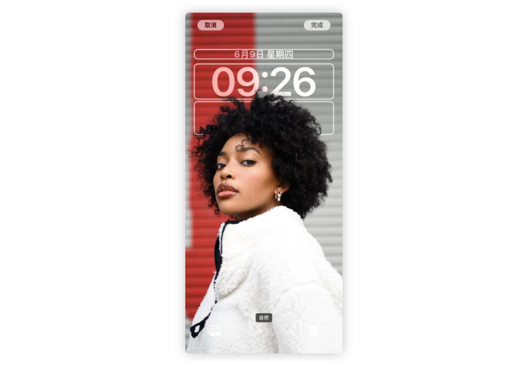 说到壁纸,Apple 在 iOS 16 中可是下了「大功夫」,不再是之前单一的动态壁纸和静态墙纸了。新的壁纸类型包含人物、照片、随机、Emoji、天气、天文、颜色八个主题。其中,选择人物主题时,系统会自动检测照片中前景部分,将前景放置在组件和时间的前方,整体融合效果非常好。