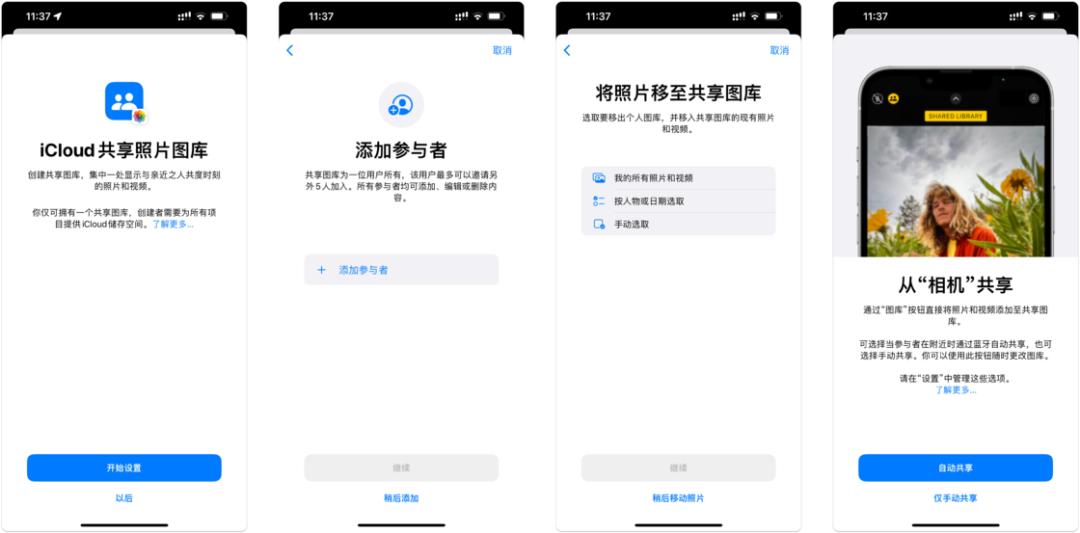 iOS 16 中,家庭共享图库将作为一个单独图库存在,你可以根据开始日期或照片中的人物,选取想要囊括的内容。共享图库设置完成后,你可以在相机 app 中直接共享照片,也可选择当共享图库的成员在附近时自动共享给对方,或是从「为你推荐」中获取智能建议,将照片添加到共享图库中。此外,在相机拍摄时如果选择共享模式,拍摄的照片将会直接共享给家人。
