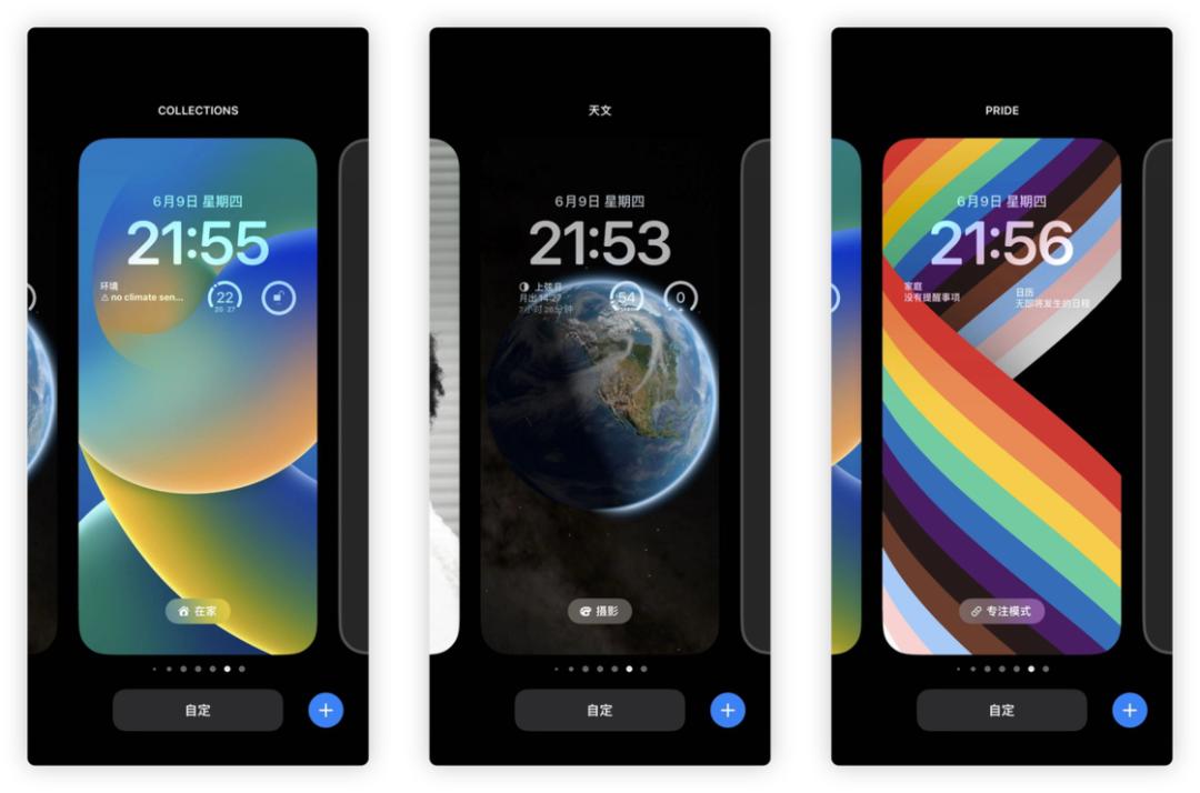 在 iOS 16 中,你可以将自己的锁屏以及桌面与专注模式进行关联,在开启不同专注模式的同时,锁屏和桌面会自动切换到自己先前设定的方案中。在不同的环境下你可能需要接受到信息不一样,例如在家需要看智能设备的状态,在工作的时候需要看日程计划,在摄影的时候需要关心日出日落。在小组件不同的同时,也可以换一张不同的壁纸,换个壁纸也换一个心情。