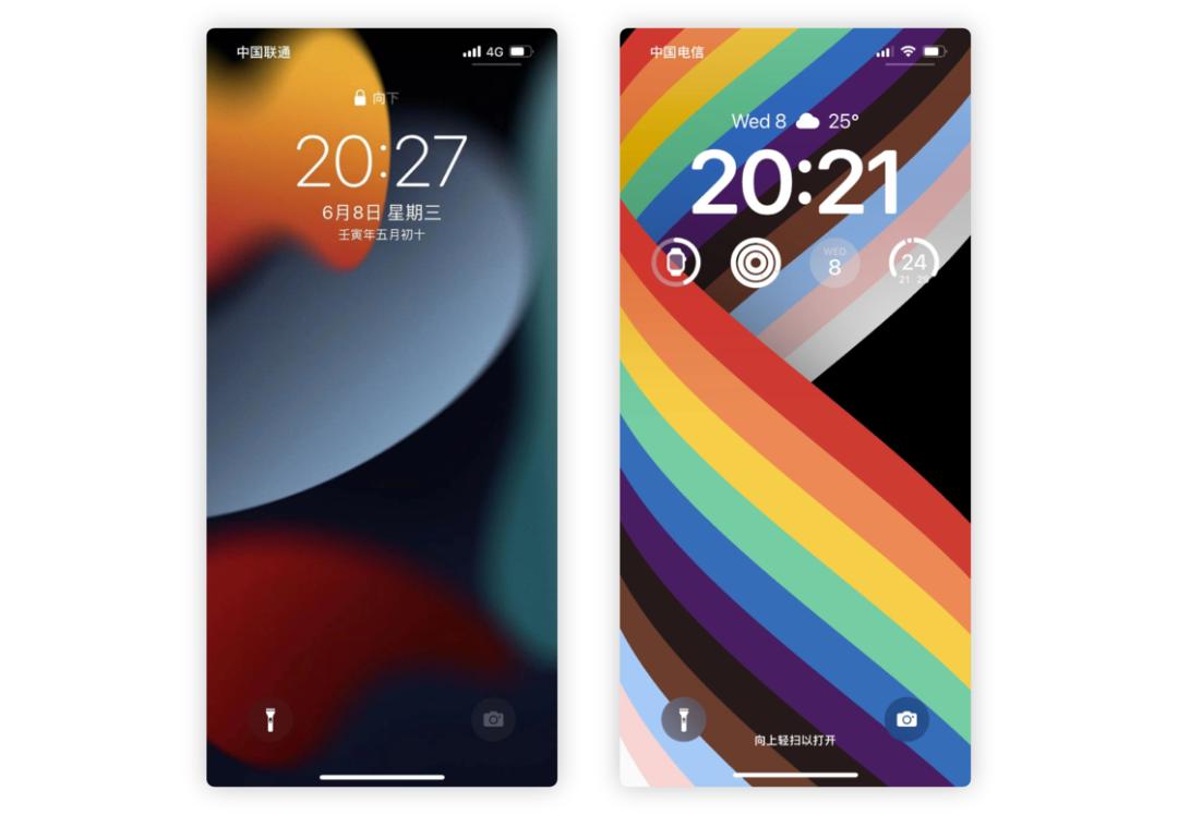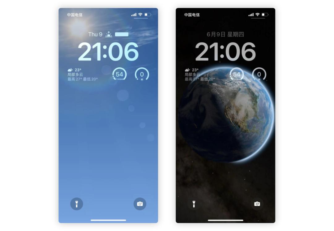 左:iOS 15 锁屏,右:iOS 16 锁屏。