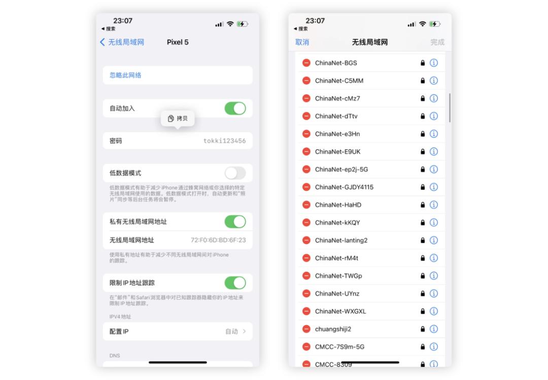 之前,iOS 并不支持 Wi-Fi 密码的查看,只可以快速将 Wi-Fi 共享给其他设备。目前,你可以进入无线局域网页面,点击目前连接的 Wi-Fi 信息,即可看到密码信息。此外,点击右上角的编辑按钮,还可以看到目前加入过的 Wi-Fi 列表,针对于不用的部分可以进行删除,并且也可以浏览历史的密码以及地址信息。