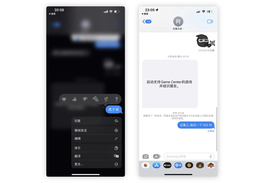 iMessage 作为原生的 Apple 即时通信 App,体验总体来说还是不错,但也存在很多小问题,比如发送的信息无法撤回修改等等。新版的 iOS 中,就解决了这个问题。用户在发送信息后的 15 分钟以内,可以长按信息进行撤回或者二次编辑,删除的信息也可以在 30 天内进行恢复。该功能需要交流的双方都处于 iOS 16 以及同代的 iPadOS 或 macOS 系统,如果对方系统过低该功能将无法使用。