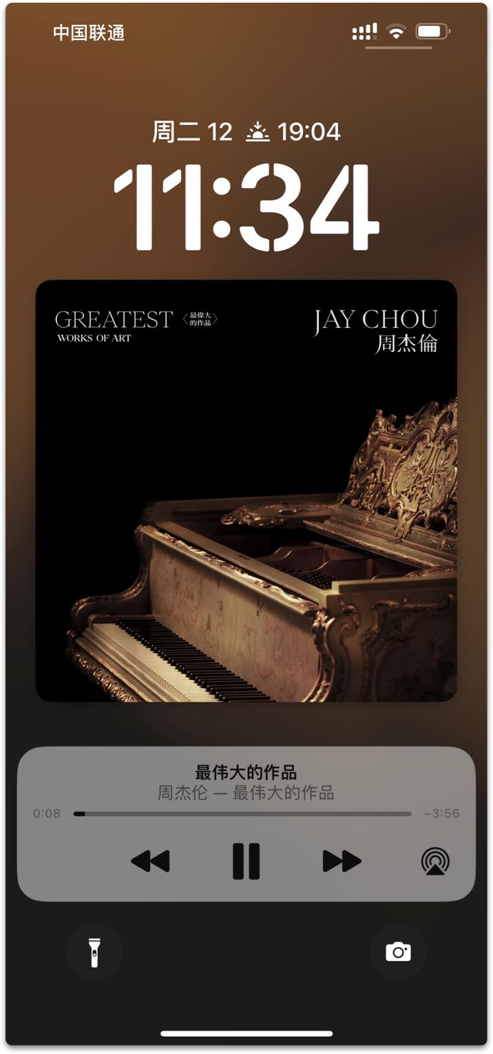在播放 Apple Music 音乐时,iOS 16 现在会在锁屏界面上显示大尺寸的音乐专辑海报。